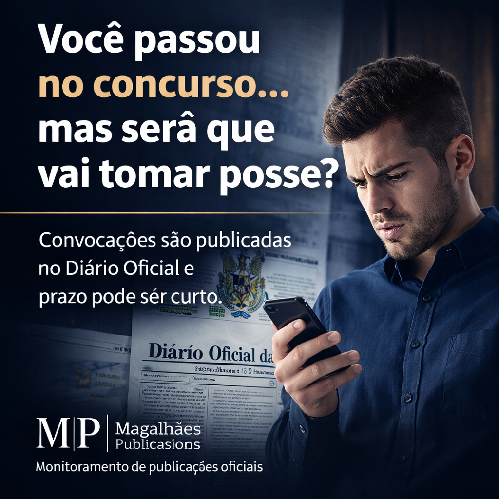⚠️ Muitos aprovados perdem a vaga por um motivo simples: não viram a convocação no Diário Oficial. Não deixe isso acontecer com você.